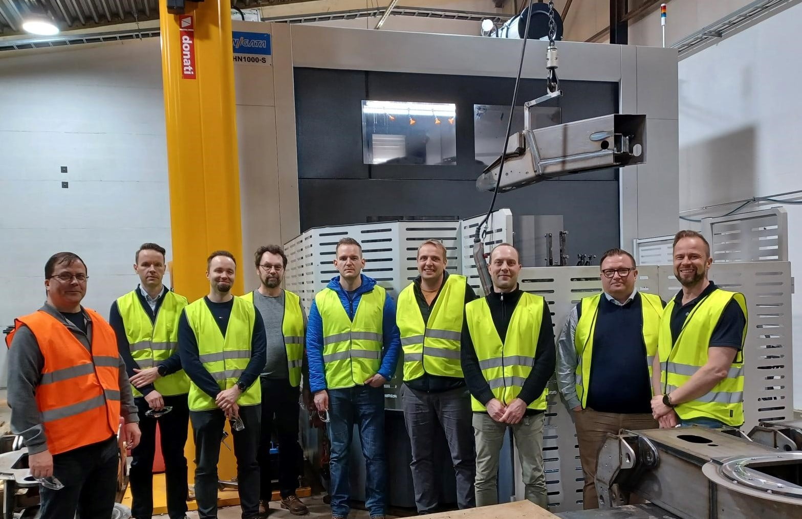 Päivän aiheena oli tuotannon automatisointi ja tutustumiskohteina Dinoliftin uusi maalausrobotti, automatisointihankkeet, koneistuksen uusin työstökone (kuva) ja hitsauksen uudet tilat, joissa Painepisteen toimittavat *CEPRO-hitsaussermit. Kaikki laitteet on asennettu Dinoliftille viimeisen kahden vuoden aikana.